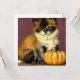 Karte mit einer Vintagen Ragdoll Halloween Katze! Diese hübsche Pose mit einem Orangenkürbis. Ein wunderbares Geschenk für Halloween-Partys und Katzenliebhaber!