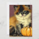 Karte mit einer Vintagen Ragdoll Halloween Katze! Diese hübsche Pose mit einem Orangenkürbis. Ein wunderbares Geschenk für Halloween-Partys und Katzenliebhaber!