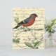 Vintag Red Blue Bird Ephemera Scrapbook Paper. Das Design zeichnet sich durch einen Vintagen roten Vogel aus, der auf Zweigen sitzt und einen handgeschriebenen Limonchiffonhintergrund hat.