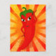 Ein niedlicher Cartoon Paprika posiert für ein Bild. Benutzerdefinierte Postkarten. Superstar-Stil. Vintager Stil für den Druck.