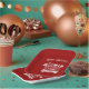 Diese Teller sind mit einem Vintagen LKW ausgestattet, der einen Weihnachtsbaum hinten trägt und oben auf einem roten Hintergrund mit weißen Schneeflecken die Worte "Frohe Weihnachten" trägt. Personalisieren Sie mit Ihrem Namen und Jahr auf der Rückseite des Abholwagens. Entworfen von den Künstlern Tim Coffey und Susan Coffey.