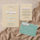 Das elegante, liebevoll gestaltete Hochzeitsangebot eignet sich perfekt für eine moderne Hochzeit und besticht durch eine elegante, farbenfrohe Kalligraphie auf einem aquamarinen Retro-Hintergrund.