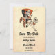 Diese Vintage Retro-Hochzeitseinladung zum Comic eignet sich für eine moderne Hochzeit. Das Vintage Retro Old 50er Rustic Wedding Save the Date Invasion