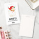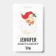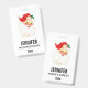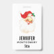 Ein Namensschild mit einem Vintage-Bild eines Retro-Santa-Claus-Gesichts. Glücklich und fröhlich mit runden rosigen Wangen.