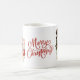 Diese Tasse besticht durch einen Vintagen Retro-Schneemann, der einen roten Schal und einen schwarzen Top-Hut trägt, während er in der einen Hand einen Hut aus heiligen Beeren und einem Bonbons in der anderen Hand hält. Die Worte "Frohe Weihnachten" in rot dekorativen Schrift ist in der Mitte der Vorder-und Rückseite der Tasse.