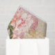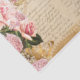 Dieses Vintage Blatt aus Blumengewebe für Decopage enthält rosa Rosen auf einem Hintergrund aus Altpapier mit Schriftzeichen, die von Perlen, Perlenbrocken und Imitaten mit goldenen Schmetterlingen hervorgehoben werden. Entworfen von Susan Coffey.