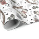 Dieses Vintage rosa Rocking Horse Gothic Wrapping Paper enthält handgezeichnet Illustrationen eines Vintagen Holzrockpferdes mit rosa Details, Rose in passenden Rosa und Cremes, Wildblumen, Blätter, Schwarzbats, Spinnennetze und funkelnde Sterne, alles auf einem klassischen, weißen Hintergrund. Ideal für gotische Babyduschen oder für jede Gelegenheit, während der spöttischen Halloween-Saison ein kleines Mädchen zu feiern.