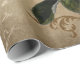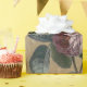 Elegantes Verpackungspapier, zum einer Touch der Klasse irgendeinem Geschenk hinzuzufügen. Vintage Art, in einem dunklen Goldhintergrund, mit stilvollem Skript und weiche lila Rosen.