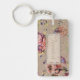 Personalisierter Acryl-Schlüsselanhänger mit hübschem Vintagem Blumenmuster auf einem rustikalen, strukturierten Hintergrund.
