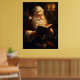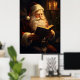 Das Vintage Poster des Weihnachtsmanns beim Lesen eines Buches bei Kerzenlicht