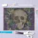 Vintager Schädel mit tiefen lila Rose und gedämpftem Blattwerk, als dramatische Vollblattkonstruktion angeordnet. Ideal für Entkopplung, Junk Journals oder Halloween-inspiriert Handwerksprojekte, bei denen ein auffälliges Bild die Wirkung erzielt.