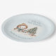 Niedliche Weihnachten Geburtstag Papier Teller mit einem bezaubernden Schneemann und Weihnachtsbaum in Blau mit Vintagen Farben. Personalisieren Sie den Text einfach. Sie können es nicht nur zum 1. Geburtstag benutzen. :) - Kate Eden Art
