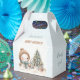 Niedliche Weihnachtsjunge Dusche kleine Gable Gevor Box mit einem schönen Schneemann, Weihnachtsbaum mit Geschenken und Schnee in blau, mit Vintagen Farben. Sie können aus 3 Größen dieser Gable-Vorzugboxen wählen - Kate Eden Art