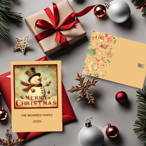 Vintag Snowman - Frohe Weihnachtsadresse Adressaufkleber