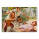 Vintages Bild von Kindern, in dem Jungen und Mädchen Baseball im Garten spielen. Eines der Kinder rutscht nach dem Anschlag auf eine Zuhause in die Zuhause. Und sie ist sicher! Der Spieler wird gewartet, den Ball zu werfen, während der Schiedsrichter das Spiel anruft und der Läufer sicher ist.