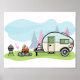 Wie Camping mit einem Camper dann ist dieses Design perfekt. Es handelt sich um einen Vintagen Camper, der neben einem brennenden Lagerfeuer geparkt ist. Dieses Vintage Wohnmobil-Design sieht auf diesem Poster großartig aus