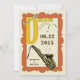 Stellen Sie sicher, dass Ihre Freunde und Liebsten für Ihre Hochzeit mit diesen Vintagen Stil Jazz Speichern Sie die Date-Karten. Die Karten sind im Stil eines Retro-Posters und verfügen über ein Saxophon mit musikalischen Noten, zwei Brillentöster, und die skurrile Phrase "Tanz essen Getränk feiern / Live-Liebe lachen singen", um eine dekorative Touch hinzuzufügen. Die Karten sind auf einem neutralen Hintergrund und weisen ein Vintages Farbschema aus Orange, Gold und Braun auf.