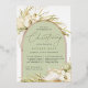 Tropische Taufe oder Taufeinladungen in einer verführerischen, neutralen Farbpalette mit einer Rose aus goldenen Bogen mit Kirchenfeiern und Party-Details, die mit blass grünen Aquarellpalmen, beachy Island foliage, weißen Orchideen, boho getrockneten Botanicals und Pampas Gras angereichert sind.