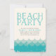 Starten Sie den Sommer mit einem Strandbash! In unseren sommerlichen Party Einladungen am Strand finden Sie gebeutelte Vintage Meereswellen-Illustrationen in coolen Farbtönen aquamarin, türkis und mint, mit "Beach Party" in aquamariner handgeschriebener Typografie. Fügen Sie Ihre Party-Daten mithilfe der bereitgestellten Vorlagenfelder hinzu. Ideal für Geburtstagsfeiern am Strand und Feiern im Sommer!