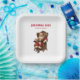 Papier Teller mit einem Vintagen Stil mit klassischem Weihnachtsmann in einem alten Armstuhl. Schönes traditionelles Weihnachtsdesign.