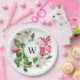 Vintag-Weiß-und rosa-Magnolien-Blume Monogramm Pappteller