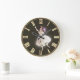 Die hübsche Wanduhr zeichnet sich durch eine hübsche Vintage Abbildung einer dunkelhaarigen Fee in weißem Kleid mit lila, getönten Flügeln, einer römischen Ziffernuhr auf dunklem Hintergrund,