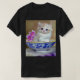 T - Shirt mit einem flauschig weißen Kätzchen! Das blaue mit Augen Kätzchen sitzt in einer blauen Schüssel mit rosa Blume. Eine lila geblümte Decke ist vorne drapiert. Ein wunderbares Geschenk für Katzenliebhaber und Viktorianische Kunstliebhaber!