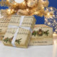 Wunderschönes Weihnachtsblatt mit Heiligenbeere und einem Vogel in ihrem Nest auf Vintagem ephemera "As Every Happy Christmas" Weihnachtsschrift drucken. Dein Geschenk wird unter dem Baum noch viel fröhlicher aussehen. Ideal für Vintage Liebhaber.