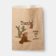 Die Vintage Wild West Cowgirl Desert Animal Fevor Tasche ist mit einem süßen "Danke!" ausgestattet, mit einem rosa Cowgirl, das spielerisch vom Text hängt. Unten entfaltet sich eine staubige Wüstenlandschaft in gedämpften Brauntönen, mit einem heulenden Coyote neben einem Kakteen, das mit einem Bogen geschmückt ist. Die Geburtstagstasche der Girls besticht durch ihren rustikalen Charme und die Wüstenjammer. Sie eignet sich hervorragend für die Leckerei des Party. Sowohl klassisch als auch lustig, ist es ein denkwürdiges Cowgirl danke Ihnen Tasche für wilde West Feiern.