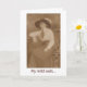 Ein Vintages, sepiabarbiges Foto einer seriös aussehenden Frau, die Western trägt. Der Vers sagt: "Meine wilden Hafer sind zu geschreddertem Weizen geworden."