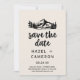 Diese Vintage Wildniskarte Save the Date ist ideal für eine Hochzeit in den Bergen. Das inspirierte Gestaltungskonzept der Felsberge besticht durch handgezeichnete Berg-, See- und Waldszene.