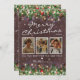 Feiern Sie die Urlaubssaison mit diesen rustikalen Weihnachtskarten mit 3 Fotos, die Sie durch Ihr eigenes ersetzen können, einem dunklen Holzhintergrund, festlichen Weihnachtsbaumzweigen, Rot- und Goldbaumdekorationen, Streichelleuchten, Ihrem Namen und dem Jahr.