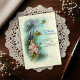 • Von einer Familiensammlung weitergegeben, die von meinem Urgroßvater in England begonnen wurde, erfasst diese digitale Illustration die zeitlose Schönheit einer Postkarte um die Jahrhundertwende. Dieses Kunstwerk zeigt zwei braune Vögel, die über einem Bündel zarter rosa und weißer Kirschblüten und einem herzlichen Geburtstagsgedicht schweben.