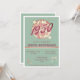 Retro Vintage Einladung für einen 75. Geburtstagsparty Bash! Machen Sie sich bereit, sich unter der Diskokugel zu bewegen, mit einem Hauch von hellrosa Tönen und einem Vintagen Drehbuch "1950" auf einem aquamarinen, grün getönten Hintergrund.