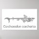 Carcharodon_carcharias-Skelett, 1887. Source Guide to the Galleries of Reptiles and Fish Günther, Albert C. L. G. Der große weiße Hai (Carcharodon carcharias), auch bekannt als der weiße Hai, weißer Zeiger, oder einfach großartig weiß, ist eine Art von großen Makrelenhai, die in den Küstengewässern aller großen Ozeane zu finden sind. Es ist die einzige bekannte überlebende Spezies ihrer Gattung Carcharodon. Der große weiße Hai ist für seine Größe bemerkenswert: Die größte erhaltene weibliche Probe misst 5,83 m (19,1 ft) Länge und etwa 2.000 kg (4.400 lb) Gewicht bei Reife.