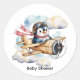 Vintage Airplane Penguin Boy Baby Shower Runder Aufkleber