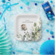 Celebrate a little one on the way with these charming vintage-inspired baby shower paper plates. Featuring an adorable teddy bear pilot flying a classic airplane, paired with soft sage green tones and delicate eucalyptus greenery, this design creates a calm, elegant, and timeless feel.