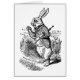 Vintage Illustration Viktorianisch Era Schwarz-Weiß Klassiker Kindermärchen von Sir John Tenniel in Lewis Carroll Buch Alice's Adventures in Wonderland, 1865. Das Weiße Kaninchen mit einem Anzug erscheint ganz am Anfang des Buches, schaut sich seine Taschenuhr an, trägt eine Weste und murmelt "Oh mein Schatz! Oh mein Gott! Ich werde zu spät sein!" Alice folgt ihm das Kaninchenloch hinunter ins Wunderland.