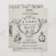 Vintage Alice im Wunderland Hochzeit Einladung mit originalen Skizzen und herrlicher Vintager Hintergrund mit musikalischen Noten. Eine skurrile Einladung, um Ihre Familie und Freunde zu Ihrer Hochzeit einzuladen.