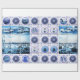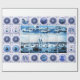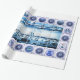 Vintages niederländisches Seefliesen-Verpackungs-Papier hollands Delftware/Delft blaues. Traditionelle alte Holländer Delftware Art deckt Muster mit niederländischer Verschiffenszene auf dem Fluss Y nahe Amsterdam mit Ziegeln und andere typische lustige niederländische blaue weiße Fliesen wie ein Regenschirmmann an einem windigen regnerischen Tag an den Zaanse Schans Windmühlen, niederländische hölzerne Schuhklötze, geschmackvoller niederländischer Imbiss "bitterballen", Windmühlen- und Schiffskompaßfliesenmuster-Druck-Packpapier für Geschenke. Dieses schöne traditionelle alte Holländerblick Holland-Geschenkpapier ist völlig kundengerecht, personifiziert mit Ihrem Namen, addiert Ihre Texte und Bilder!