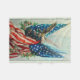 Viktorianische Abbildung von drei amerikanischen Flaggen mit einem Adler und Rose.