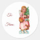 Hübscher, Vintager Engel mit Korb, Geschenken und Baum, ist auf diesem runden Geschenkaufkleber für Weihnachten zu sehen. Von und zu Geschenksticker, können auf Geschenktaschen oder Geschenkpapier verwendet werden!