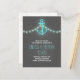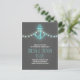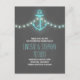 Romantische nautische Save the Date Postkarte mit Vintagem Anker, türkisblaue Saitenleuchten und Chalkboard-Hintergrund. Ideal Save the Date für Wassersport, Strand und Hochzeiten in Urlaubsort