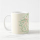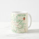 Eine lustige Vintage Postkartenlandkarte der Insel Antigua, die auf einer Tasse neu angelegt wurde.