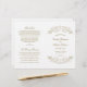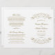 Dekorative Wirbel und Schnörkel umrahmen dieses Vintage, inspirierte Hochzeitsfeierprogramm. Weißer Hintergrund mit antikem Golddesign. Personalisieren Sie den benutzerdefinierten Text für Ihr Brautparty, Zeremonie Informationen, und danken Sie Ihnen Nachricht. Hinweis: Diese Textgewichtspapierprogramme kommen flach an und müssen zum Zusammenbauen zusammengelegt werden.