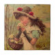 Vintage ~ Antiken-viktorianisches Mädchen, welches die wilde Blumen ~ Keramik-Akzentfliese genießt. Genießen Sie Fliese u. Dank für das Kurz aufhalten bei!