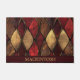 Welcome guests with timeless elegance using this personalized vintage stained glass-inspired doormat. Featuring a rich mosaic pattern in deep shades of burgundy, gold, and espresso, this design mimics the warm glow of classic stained-glass artistry. The textured, jewel-toned look adds sophistication to any entryway while creating a memorable first impression. Your custom family name appears prominently along the bottom in refined gold lettering, giving the mat a luxurious, bespoke touch. Perfect for front porches, hallways, patios, or as a thoughtful housewarming gift, this doormat combines durability with artful design.