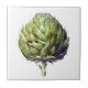 Vintager Stil Aquarellmalerei von grünen Artischocken Blume Kunst gedruckt auf quadratische Fliesen. Ideal für die Küche für Naturliebhaber und Landschaftsliebhaber.