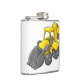 Ein cooler Entwurf eines gelben Gräbers. Der Gräber ist in einem untätigen Staat. Der Baggerkörper ist mit grauen Rädern und grauem Eimer gelb. Dieser gelbe Baggerentwurf schaut auf dieser Flasche groß