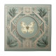 Beautiful soft vintage tones of sage green are perfect for a tile that fuses art with modern elegance. The design has botanical accent with a symmetrical form in Art Deco fashion. Soft tones of cream embellish and highlight the artwork. In the center is a matching accent form of butterfly which can be personalized with your photo. You have the option to put your icon in the center. You can also remove the butterfly and leave the center circle blank. Perfect for home accent, kitchen backsplash tile, bathroom and wall accents. The design perfectly blends with matching aesthetics preventing stains from oil on kitchen wall and food on countertops, soap etc. on bathroom tiles.